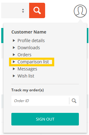 On a product page (or in the category view), look for the Compare Icon (two intertwined arrows).
